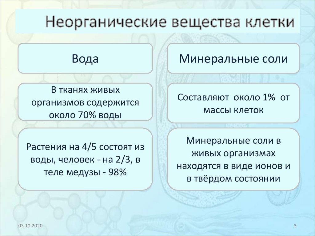 Неорганические молекулы живого вещества: вода; химические свойства и биологическая роль