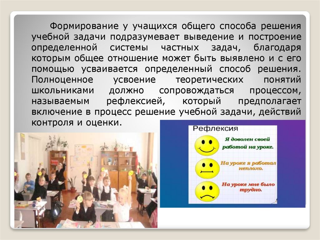 Формирование у учащихся общего способа решенияучебной задачи подразумевает выведение и построение