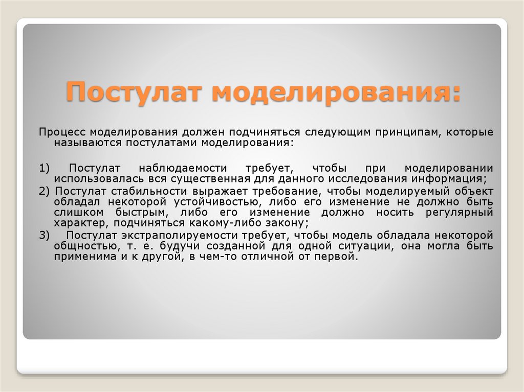 3) Постулат экстраполируемости требует, чтобы модель обладала некоторой