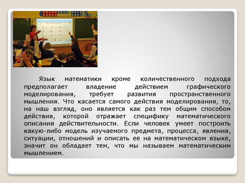 постичь специфику языка математики, научиться говорить на нем, т. е.