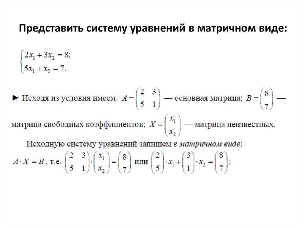 Представить систему уравнений в матричном виде: