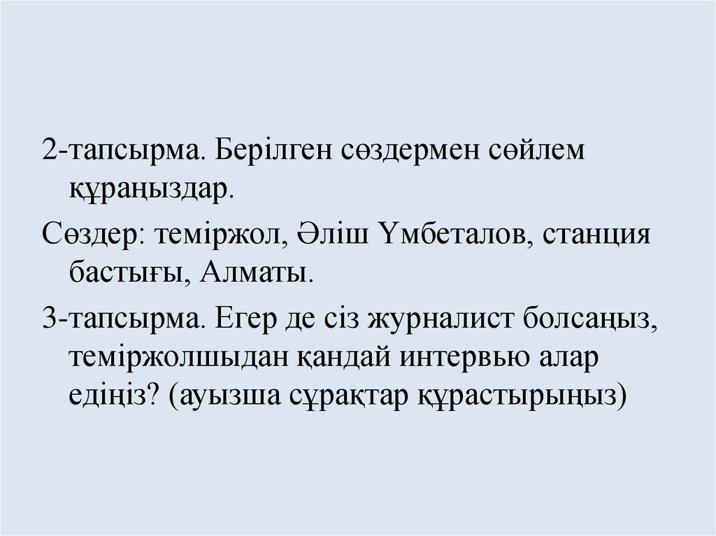 2-тапсырма. Берілген сөздермен сөйлемқұраңыздар.