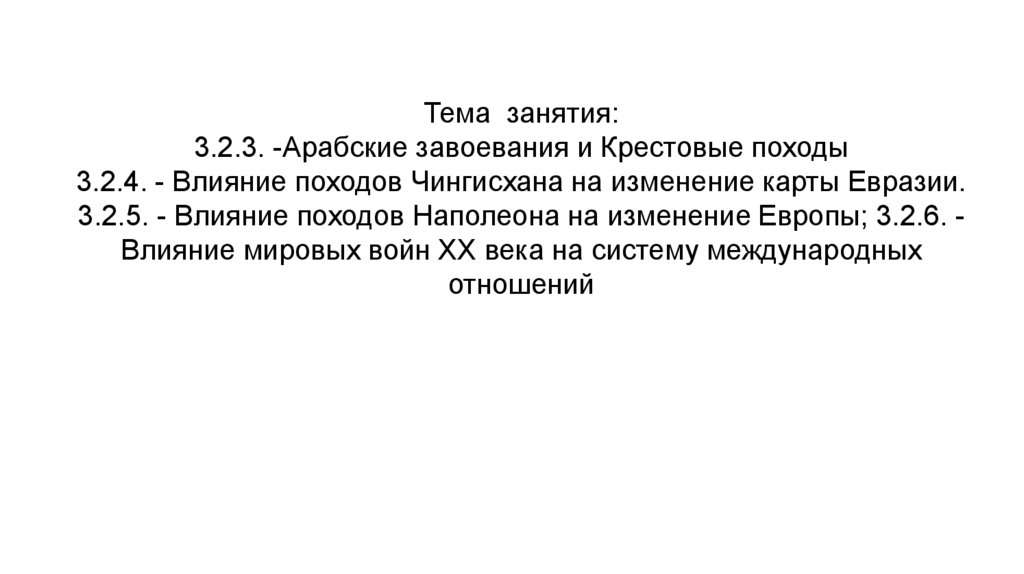 Тема занятия:3.2.3. -Арабские завоевания и Крестовые походы