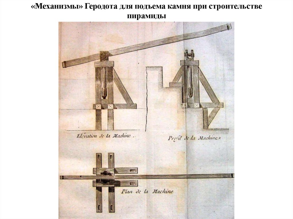 «Механизмы» Геродота для подъема камня при строительствепирамиды