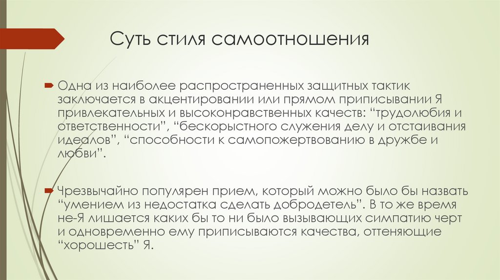 Суть стиля самоотношенияДанный стиль защиты самоотношения своим