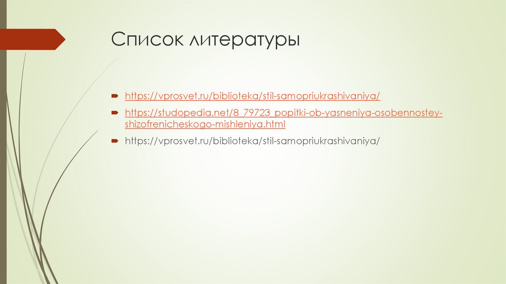 Список литературыhttps://vprosvet.ru/biblioteka/stil-samopriukrashivaniya/