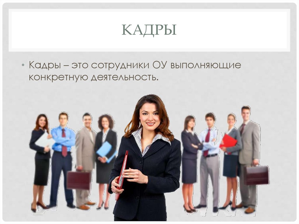КАДРЫ• Кадры – это сотрудники ОУ выполняющие