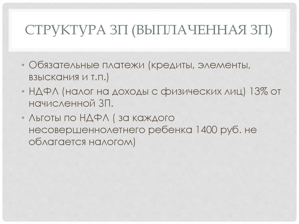 СТРУКТУРА ЗП (ВЫПЛАЧЕННАЯ ЗП)• Обязательные платежи (кредиты, элементы,