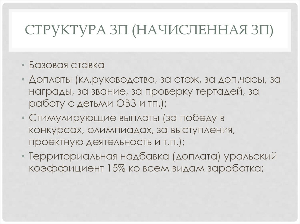 • Доплаты (кл.руководство, за стаж, за доп.часы, за
