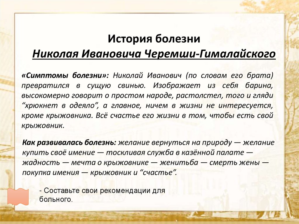 «Симптомы болезни»: Николай Иванович (по словам его брата)