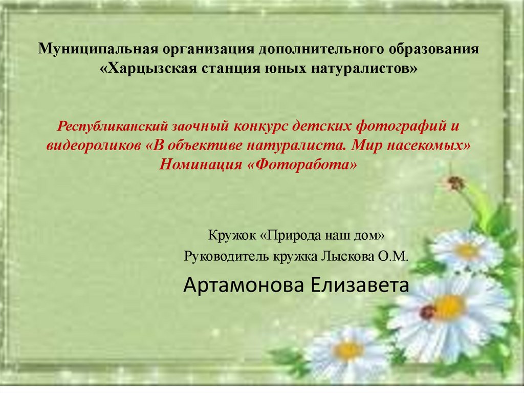 Мир насекомых. Фоторабота Артамоновой Елизаветы