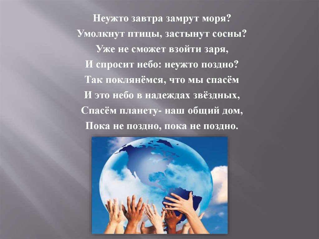 Неужто завтра замрут моря?Умолкнут птицы, застынут сосны?