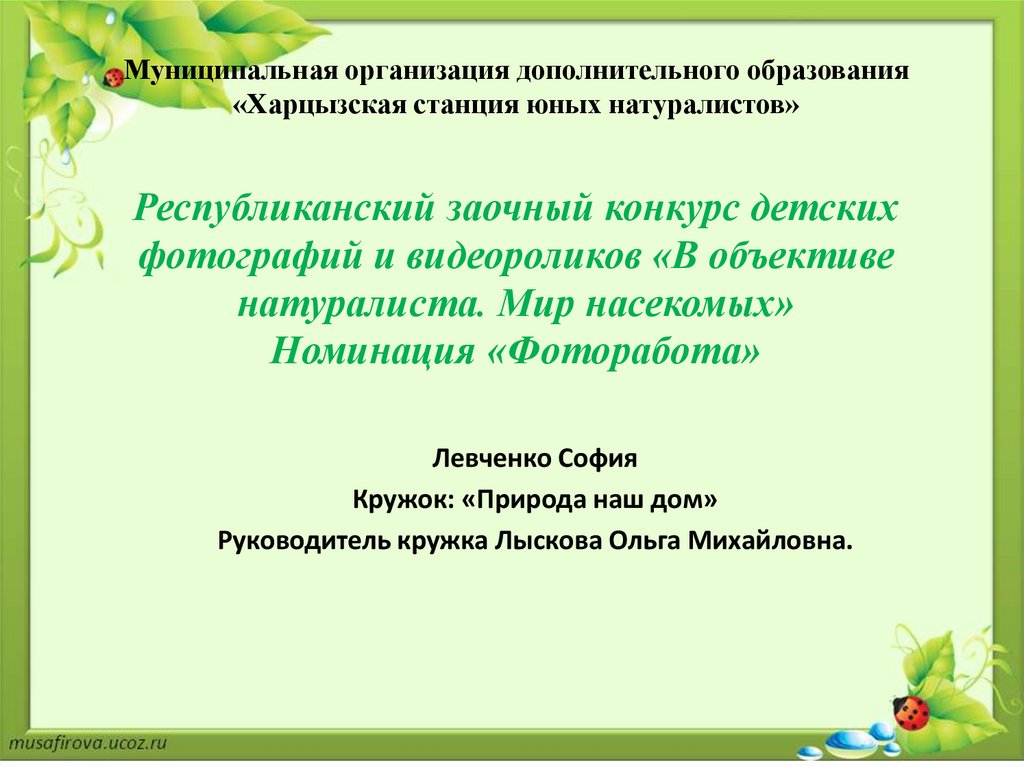 Мир насекомых. Фоторабота Левченко Софии