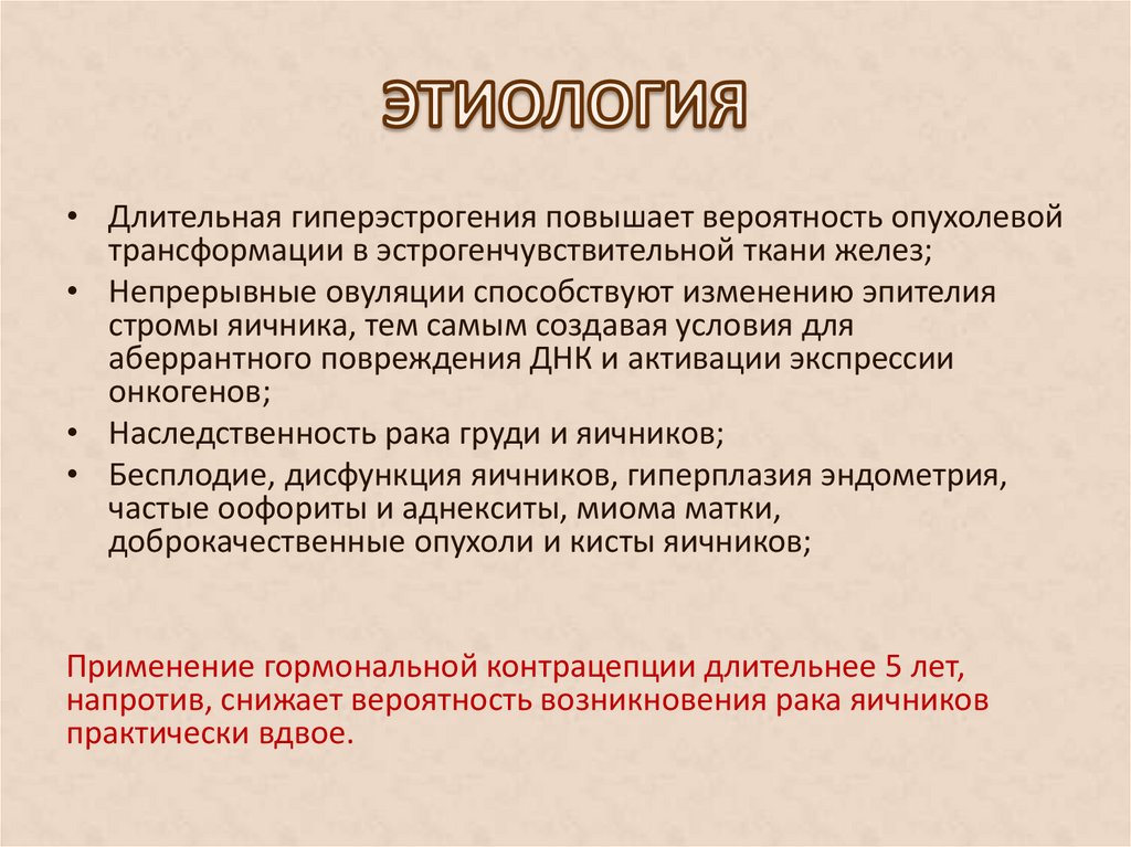 • Непрерывные овуляции способствуют изменению эпителия