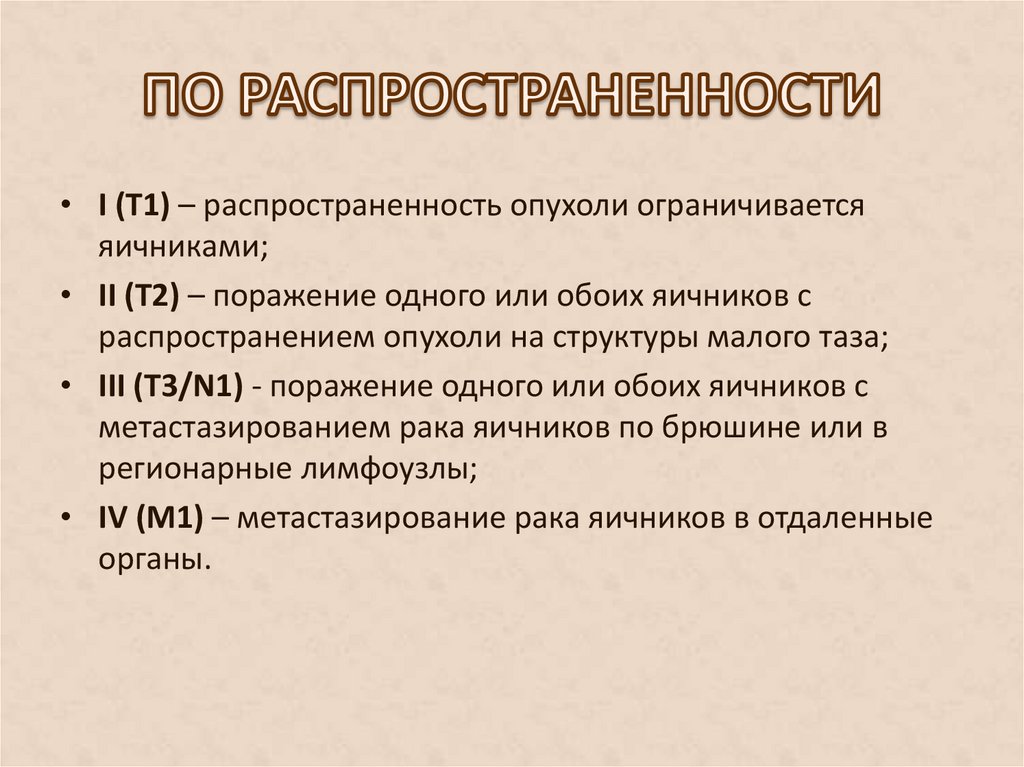 • I (T1) – распространенность опухоли ограничиваетсяяичниками;