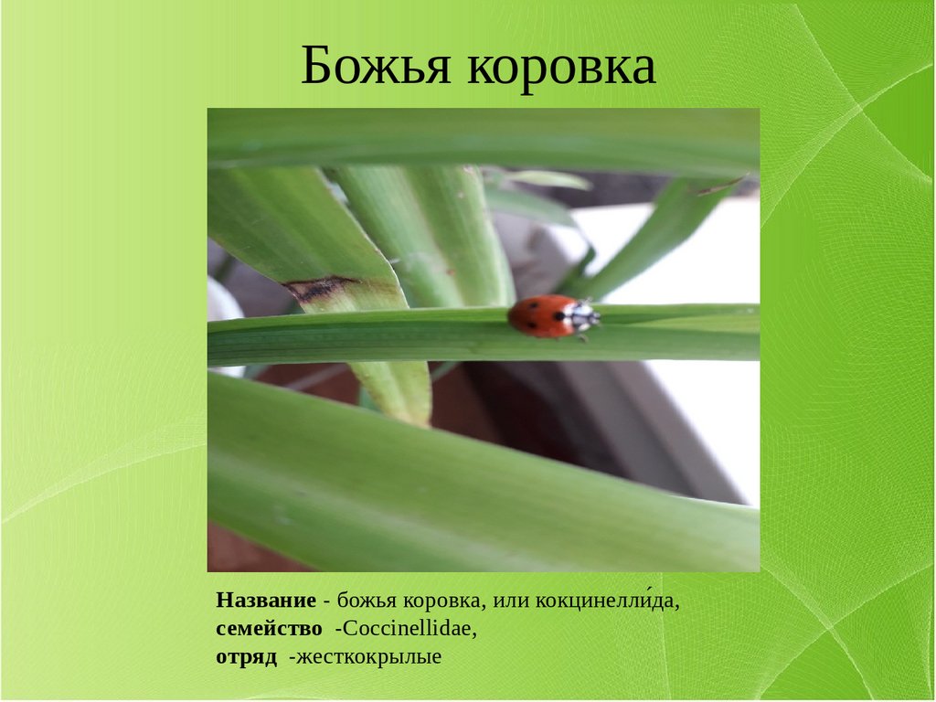Божья коровкаНазвание - божья коровка, или кокцинелли́да,