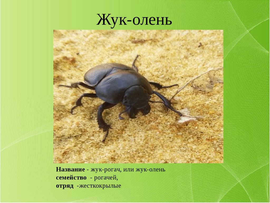 Жук-оленьНазвание - жук-рогач, или жук-олень