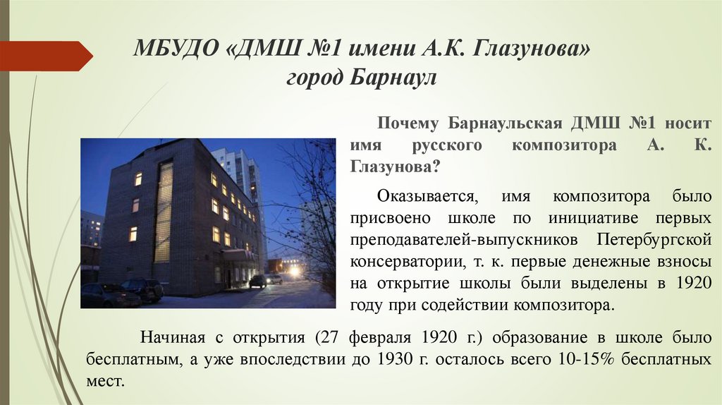 МБУДО «ДМШ №1 имени А.К. Глазунова»город Барнаул
