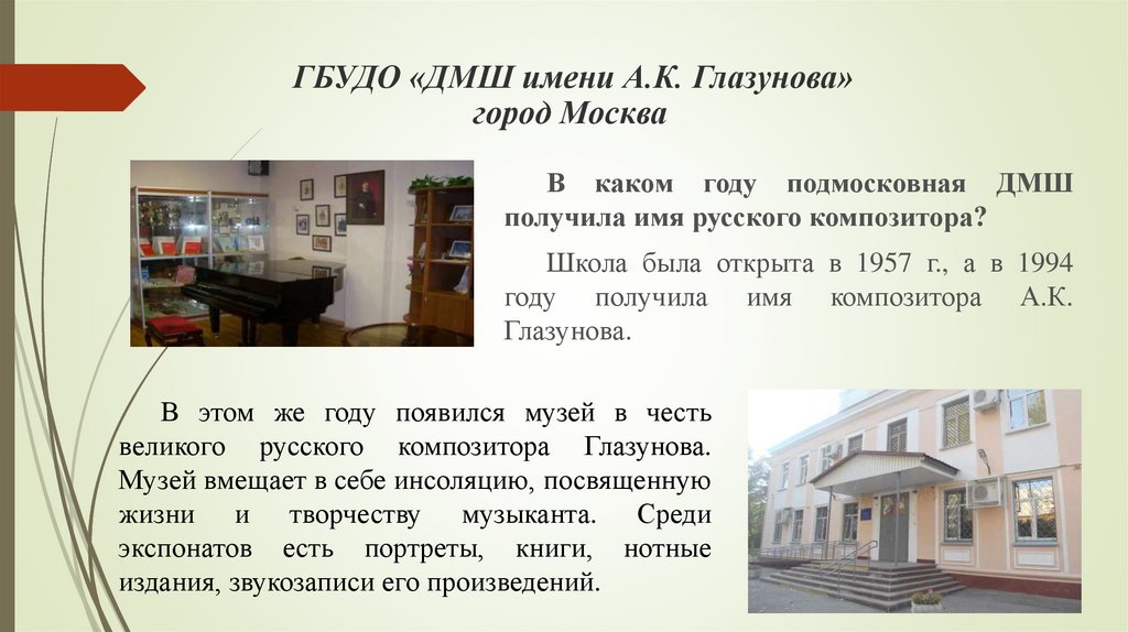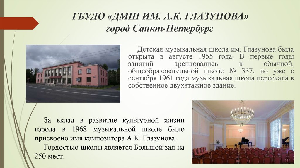 ГБУДО «ДМШ ИМ. А.К. ГЛАЗУНОВА»город Санкт-Петербург