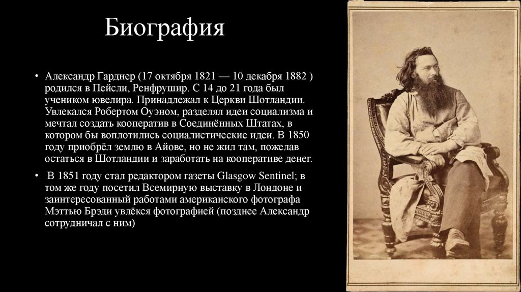 Биография• Александр Гарднер (17 октября 1821 — 10 декабря 1882 )