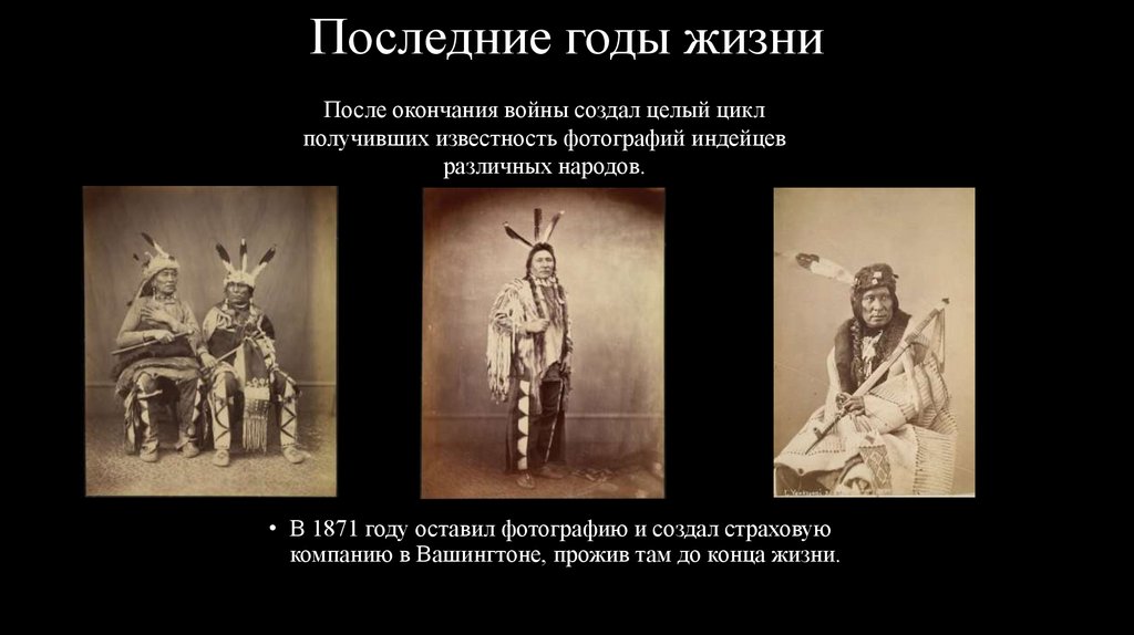 Приобретение известности• Известность приобрёл с 1862 года своими фотографиями сражений