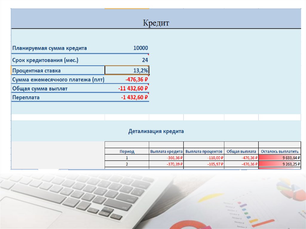 После того как Вы поработали свкладками «Вклад» и «Кредит»