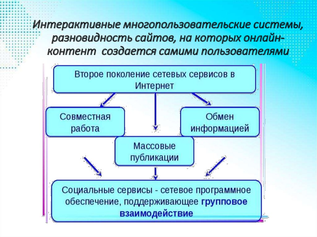 Интерактивные многопользовательские системы,разновидность сайтов, на которых онлайнконтент создается самими пользователями