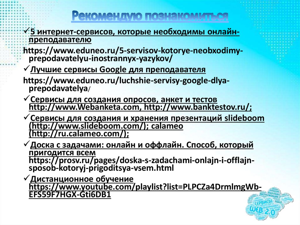 5 интернет-сервисов, которые необходимы онлайнпреподавателюhttps://www.eduneo.ru/5-servisov-kotorye-neobxodimyprepodavatelyu-inostrannyx-yazykov/