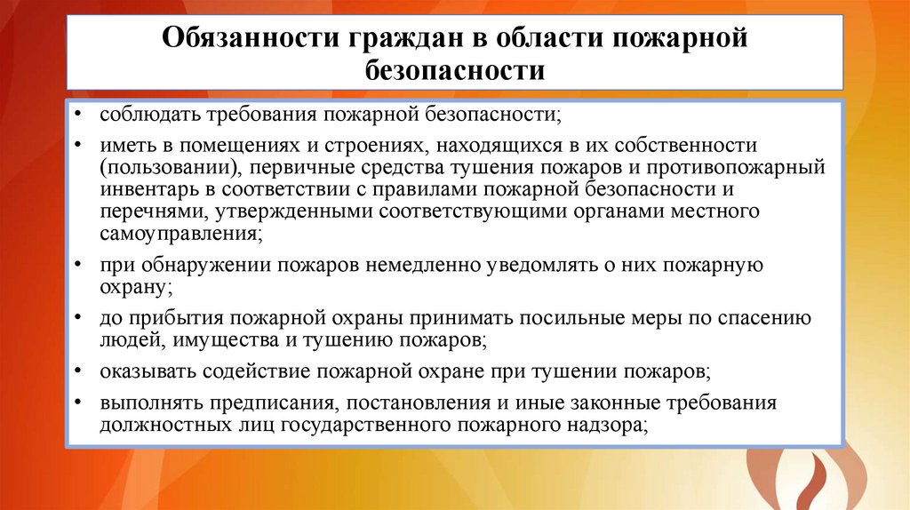 Обязанности граждан в области пожарнойбезопасности