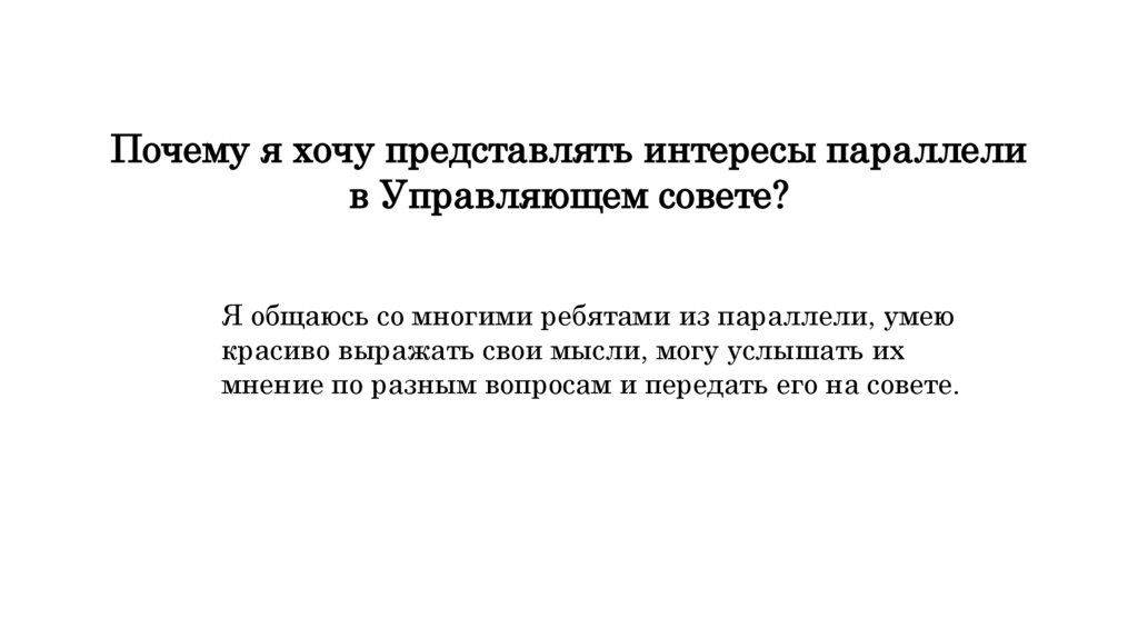 Почему я хочу представлять интересы параллелив Управляющем совете?
