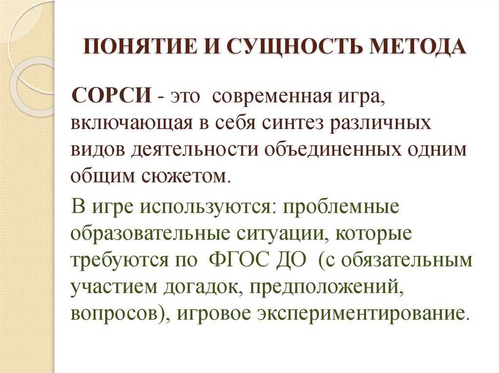 ПОНЯТИЕ И СУЩНОСТЬ МЕТОДАСОРСИ - это современная игра,
