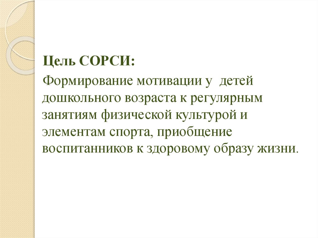 Цель СОРСИ:Формирование мотивации у детей