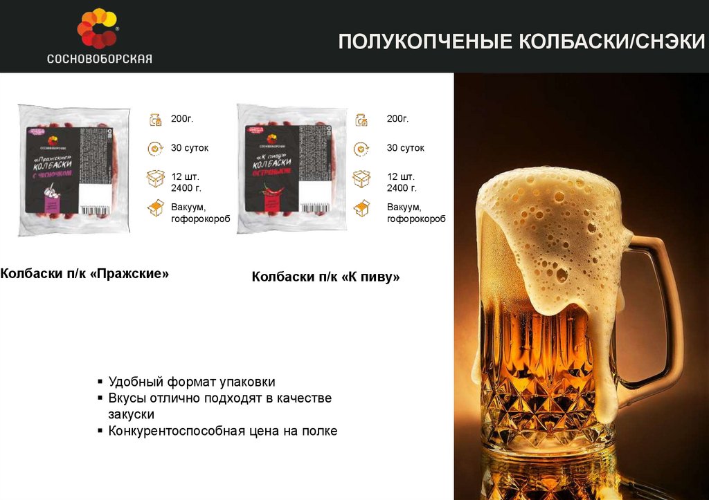 ПОЛУКОПЧЕНЫЕ КОЛБАСКИ/СНЭКИКолбаски п/к «Пражские»