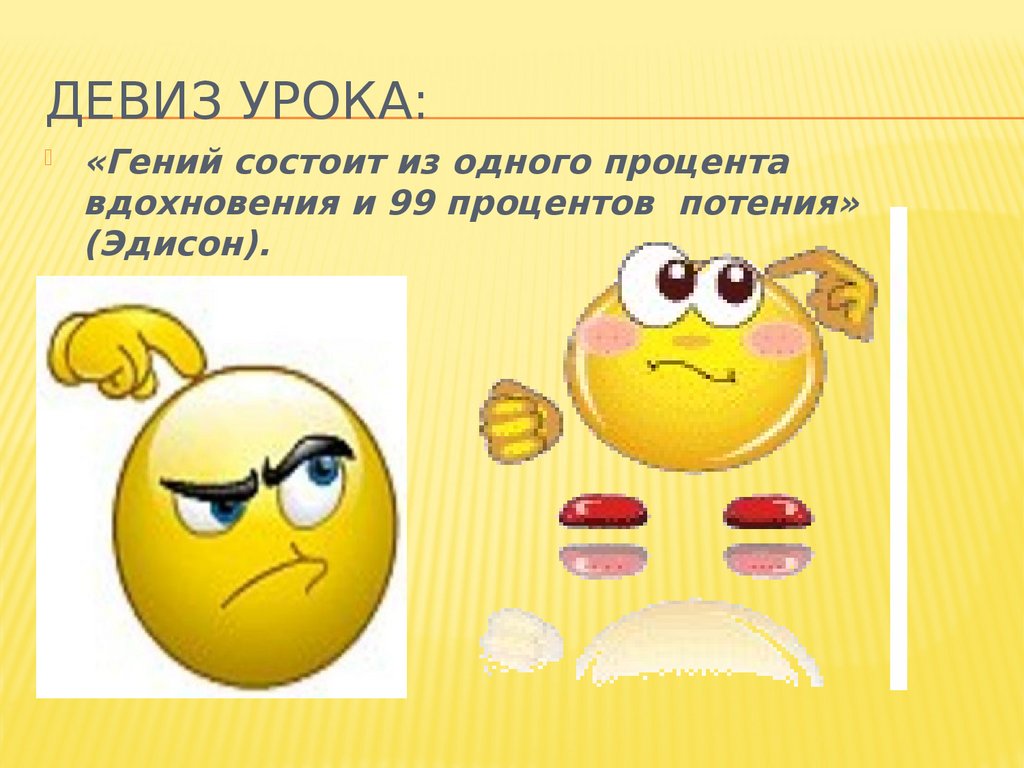 ДЕВИЗ УРОКА:«Гений состоит из одного процента