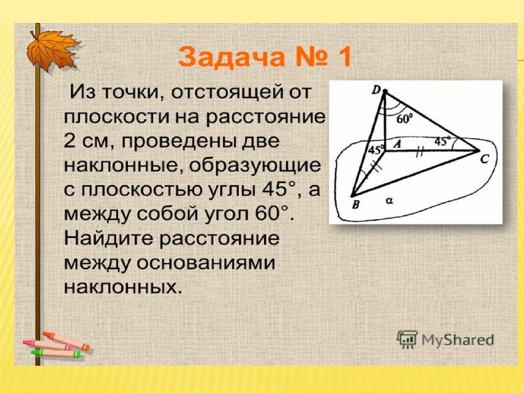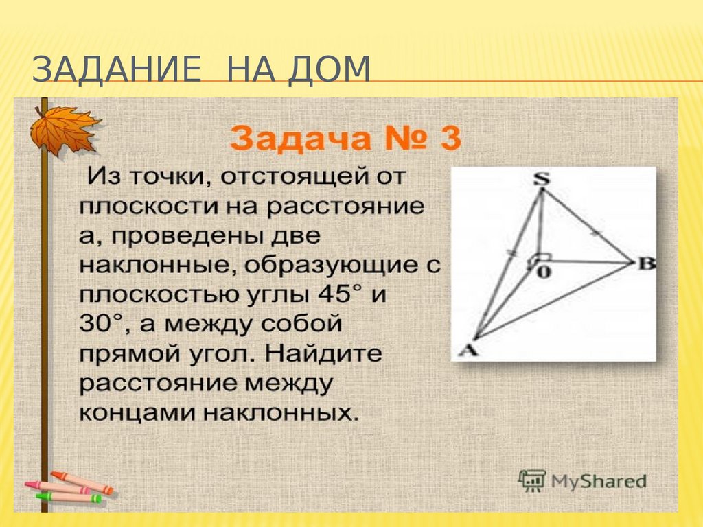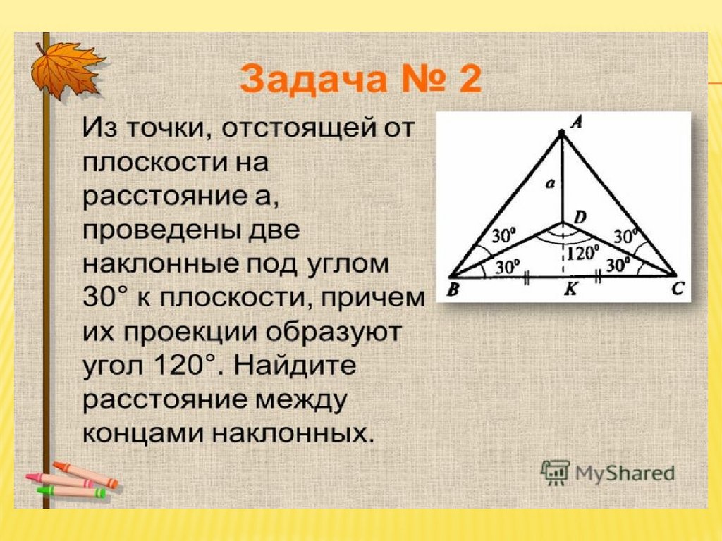 ПЕРЕСЕКАЕТ ДАННЫЕ ПЛОСКОСТИ ПО ДВУМ ПРЯМЫМ . УГОЛ МЕЖДУ ЭТИМИ