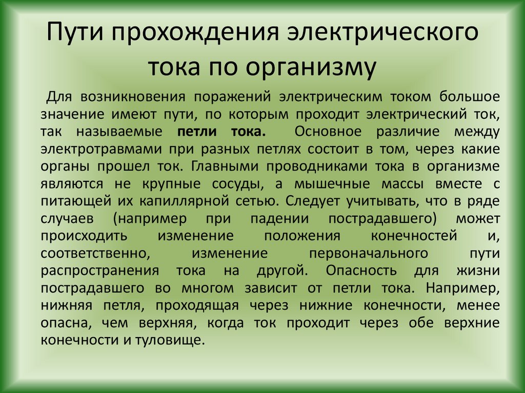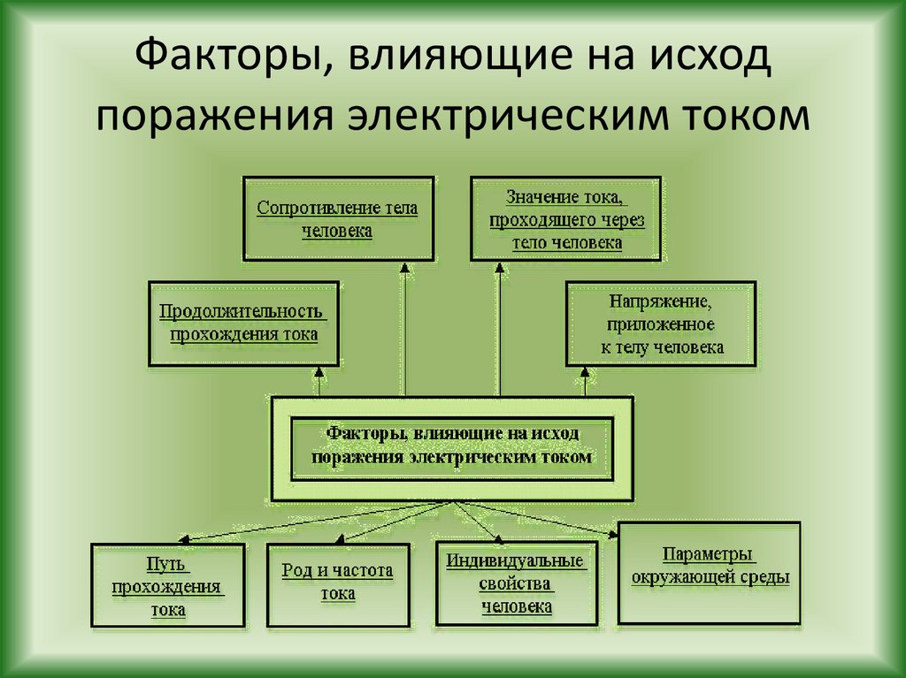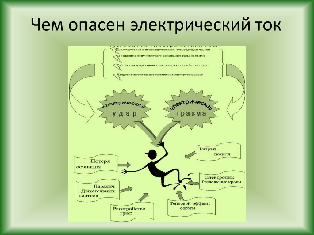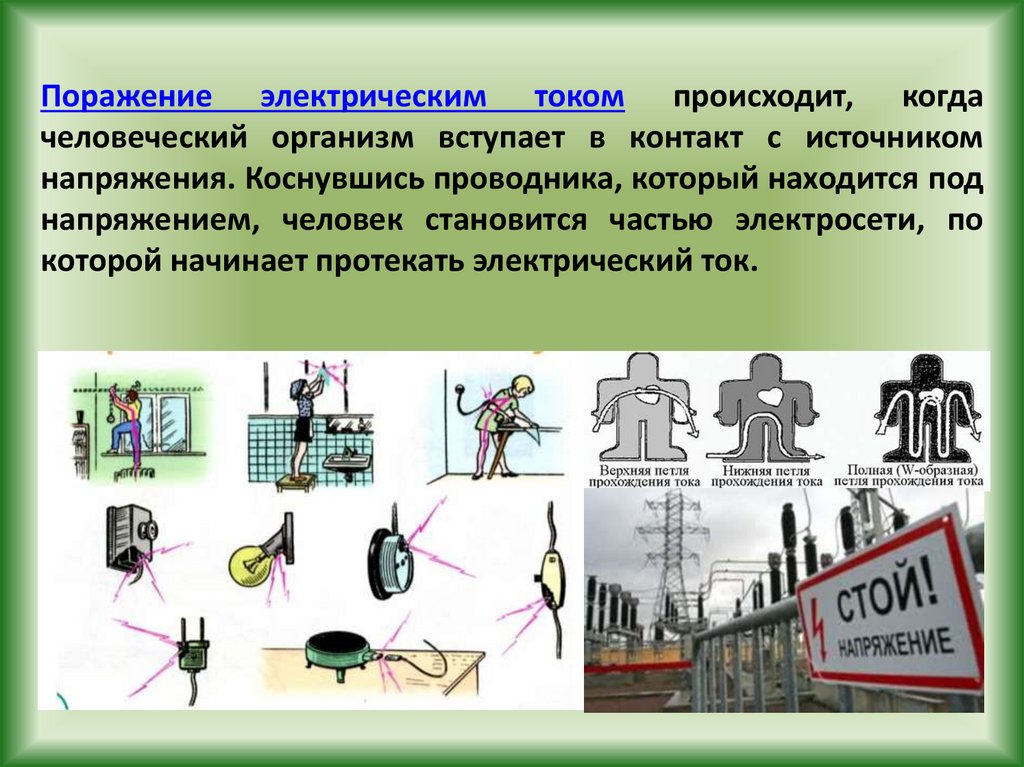 Поражение электрическим током происходит, когдачеловеческий организм вступает в контакт с источником