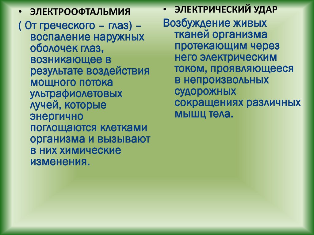 • ЭЛЕКТРООФТАЛЬМИЯ( От греческого – глаз) –