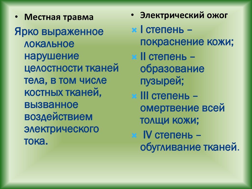 • Контактный ожог • Электрические знакиПредставляют собой резко