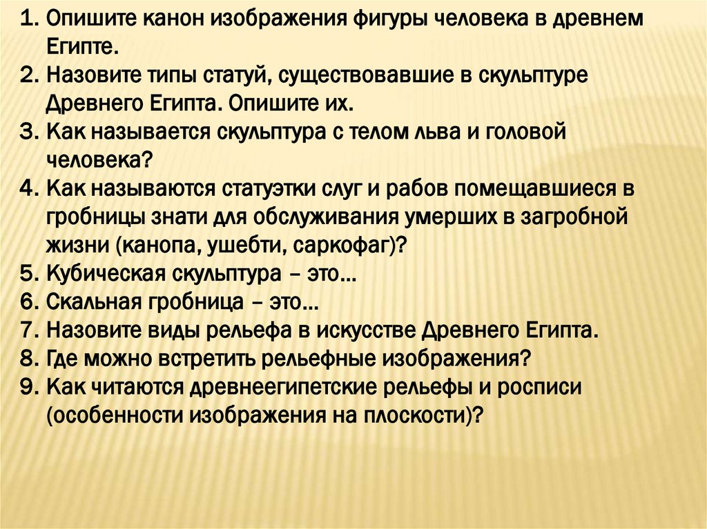 1. Опишите канон изображения фигуры человека в древнемЕгипте.