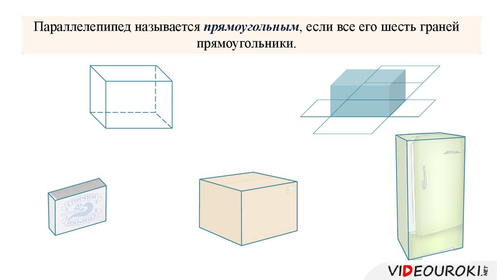 Параллелепипед называется прямоугольным, если все его шесть гранейпрямоугольники.