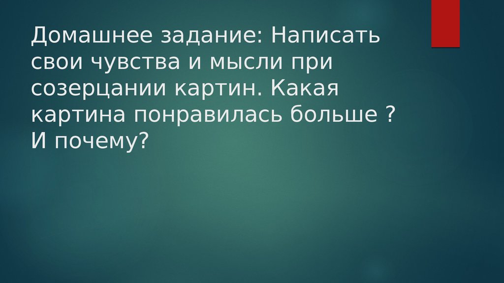Домашнее задание: Написатьсвои чувства и мысли при