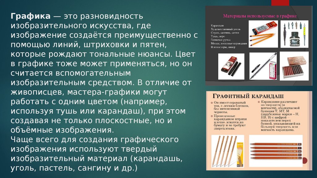 Графика — это разновидностьизобразительного искусства, где