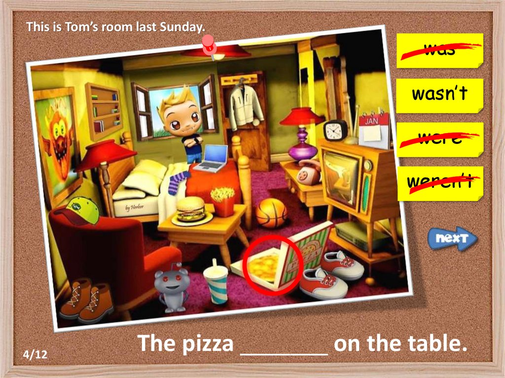 This is Tom’s room last Sunday.was