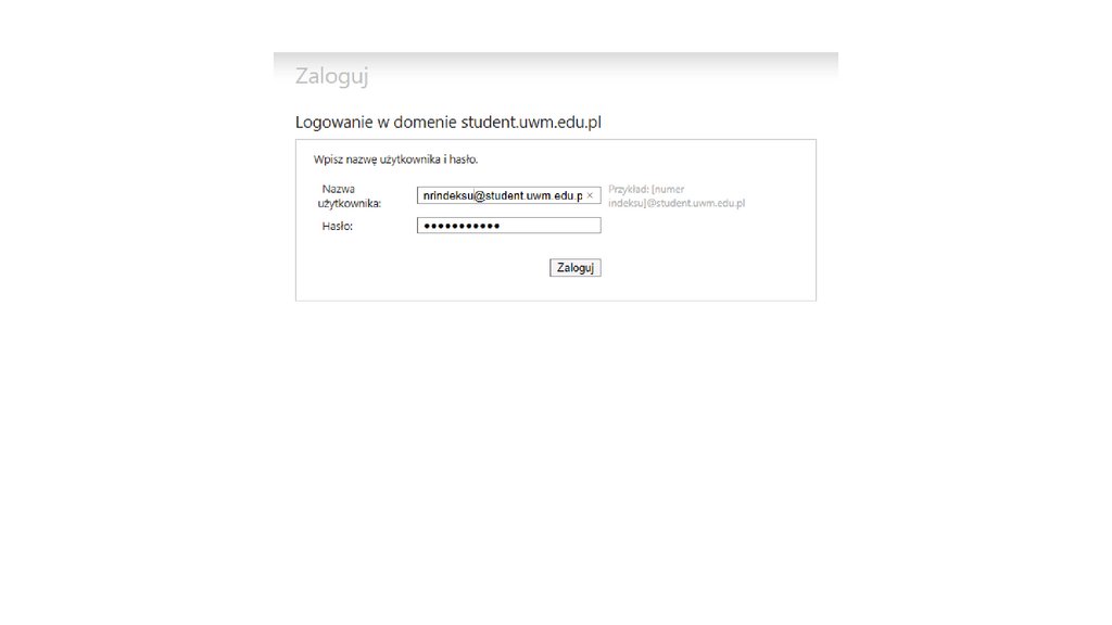 Schemat logowania• Login: nrindeksu@student.uwm.edu.pl
