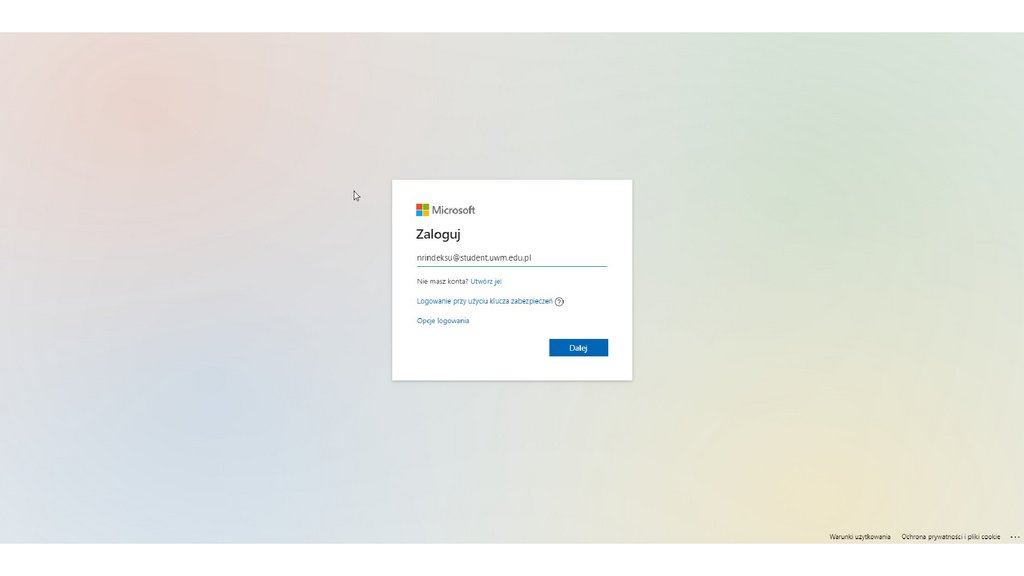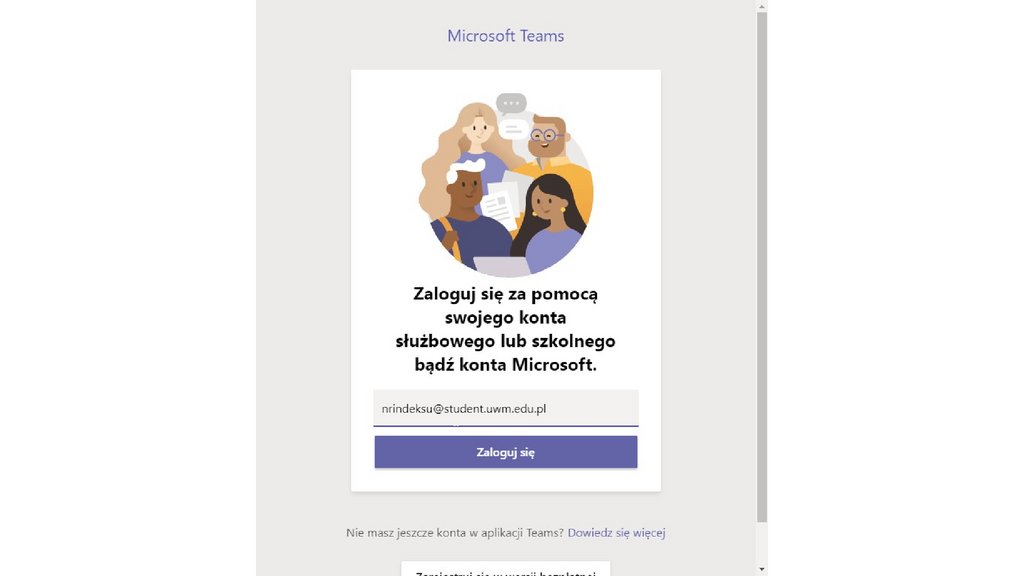 Poczta uniwersyteckaLogowanie wygląda podobnie jak do MS Teams w przeglądarce za pośrednictwem strony