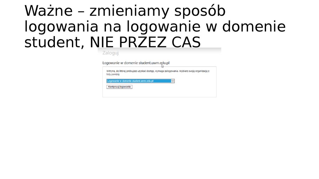 Ważne – zmieniamy sposóblogowania na logowanie w domenie