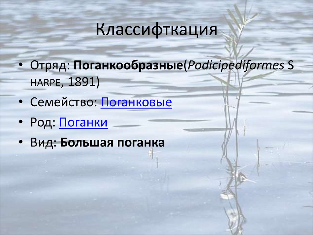 Классифткация• Отряд: Поганкообразные(Podicipediformes S