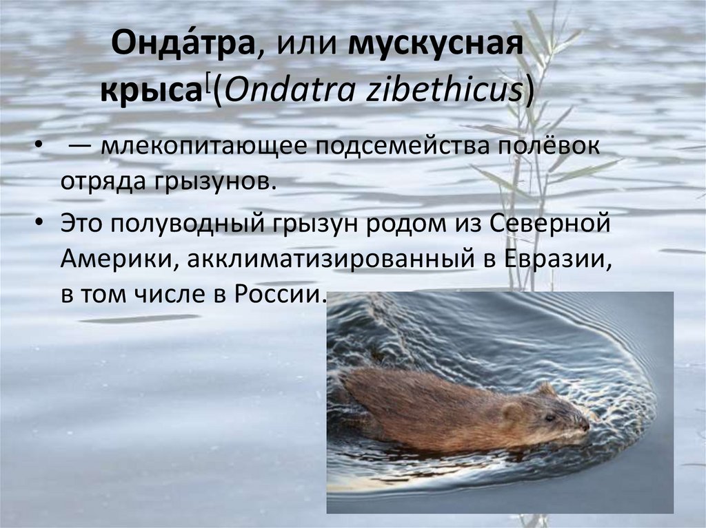 Онда́тра, или мускуснаякрыса[(Ondatra zibethicus)
