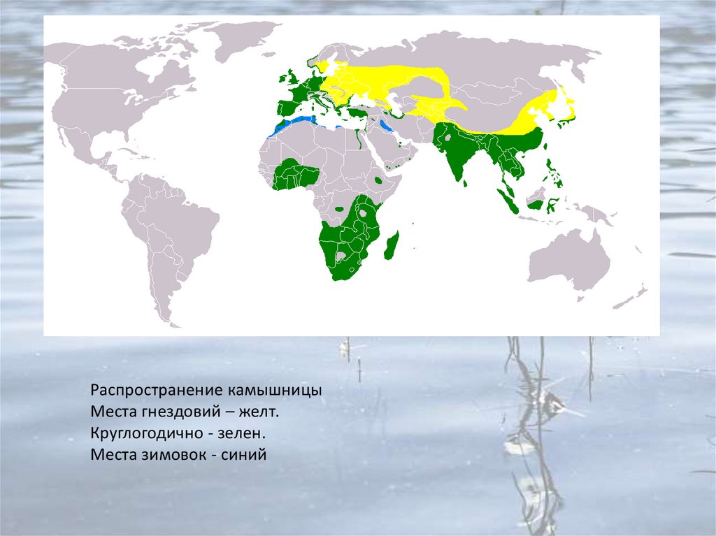 Распространение камышницыМеста гнездовий – желт.