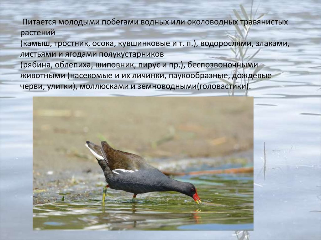 Питание• Питаются прибрежными и водными